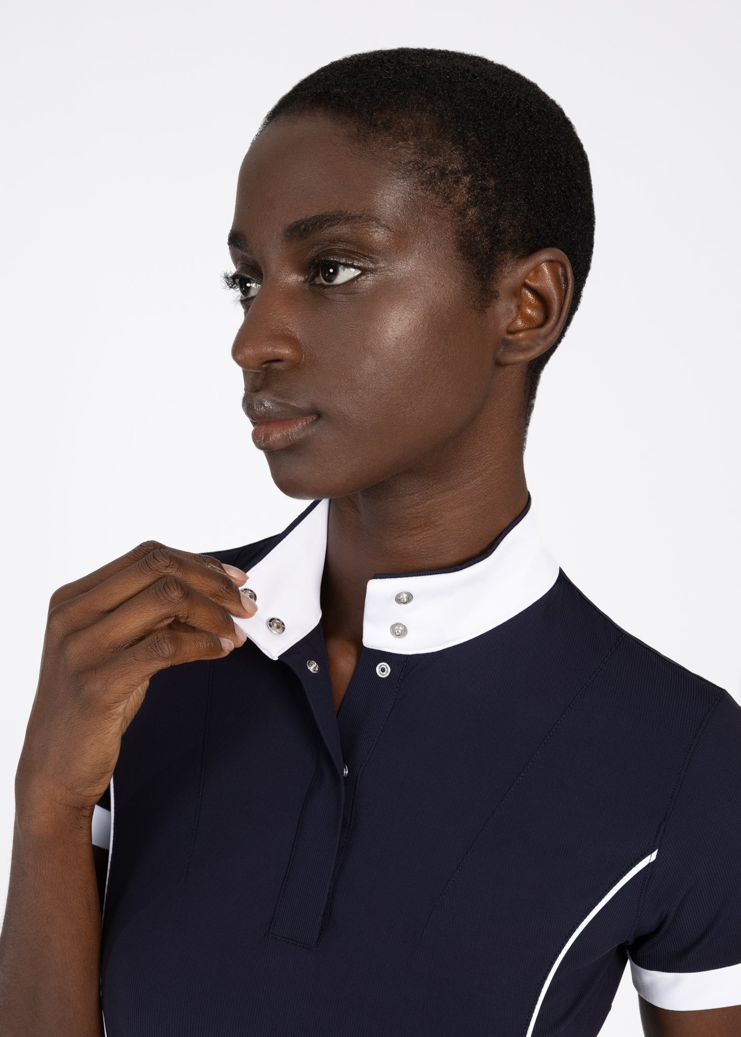 - Flattering feminine fit with contrast piping to accentuate the silhouette